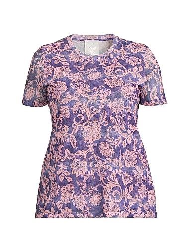 Johnny Was Футболка Plus Florentina из мягкого сетчатого трикотажа с цветочным узором и классическим круглым вырезом