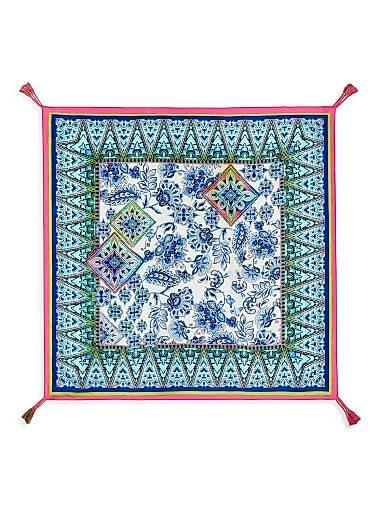Johnny Was Шёлковый шарф Elaine с цветочным принтом и геометрической каймой, 112 см x 112 см