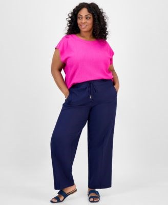 Наслаждайтесь комфортом и стилем с этими брюками большого размера с завязками от Jones New York, выполненными из легкой льняной смеси.