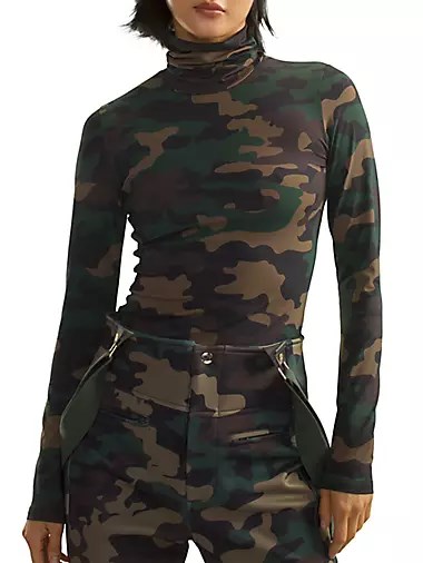 Этот топ с воротником-лодочкой от Cynthia Rowley украшен камуфляжным принтом и обеспечивает обтягивающую посадку.