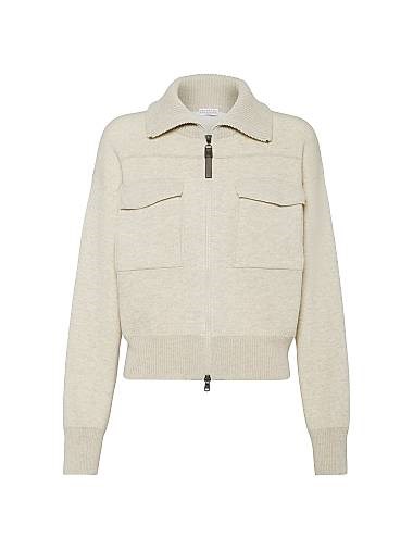Кардиган Brunello Cucinelli из двойного плетения кашемира с высоким воротником и двумя карманами