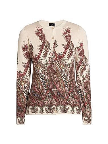 Кардиган из итальянского шелка и кашемира с узором пейсли, длинными рукавами и пуговицами, Etro