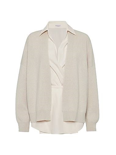 Кардиган из кашемира английской вязки Brunello Cucinelli с отстёгивающейся блузкой и декором из монели