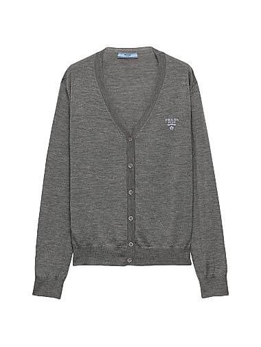 Кардиган из кашемира Prada с длинными рукавами и интарсией, 98% кашемира