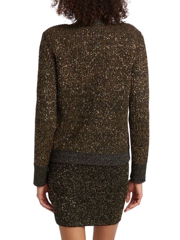 Созданный из металлического трикотажа и украшенный пайетками, кардиган Jinny от L'Agence имеет V-образный вырез и длинные рукава.