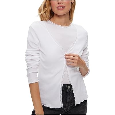 Кардиган Michael Stars Beatrice с V-образным вырезом, длинными рукавами и кружевными деталями из 100% хлопка Supima