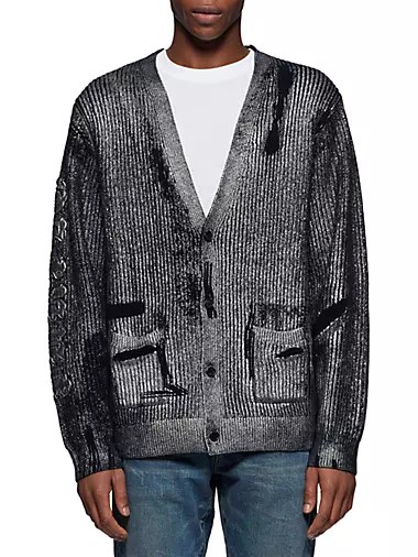 Кардиган с опущенными плечами от Purple отличается расслабленным силуэтом и оригинальным дизайном металлизированной фольги с потертостями.