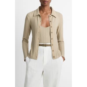 Широкие ребра подчеркивают облегающий крой этого мягкого кардигана из смеси хлопка, завершенного изящным воротником.