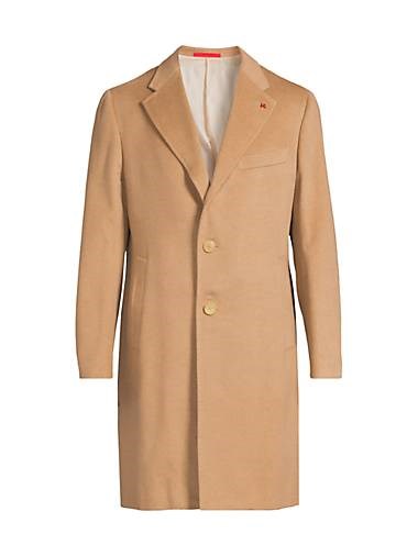 Кашемировое пальто Ross от Isaia с лацканами, карманами и застежкой на одну пуговицу, произведено в Италии