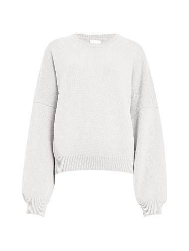 Свитер Margaux от Khaite создан из роскошного итальянского кашемира. Он имеет классический круглый вырез и объёмные длинные лонгсливы.