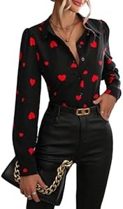 Хлопковая блуза Floerns с длинными рукавами и принтом в виде сердечек, 3% полиэстер, украшена ювелирными деталями