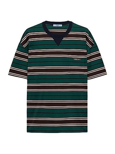 Хлопковая футболка Prada с полосатым дизайном, короткими рукавами, свободным кроем и нашивкой на груди
