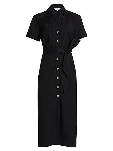 Хлопковое миди-платье рубашка с поясом и короткими рукавами Tabby от Veronica Beard