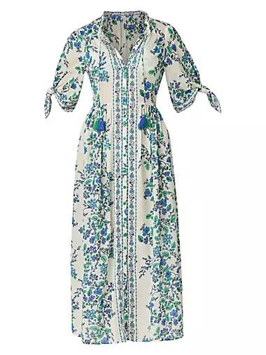 Хлопковое цветочное платье средней длины с завязками на рукавах и пуговицами от Shoshanna