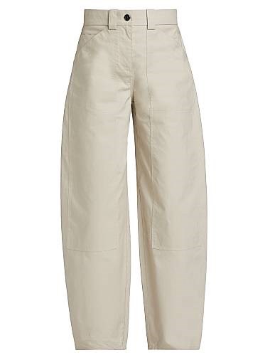 Брюки с высокой талией в стиле balloon изготовлены из плотного хлопкового холста, что придаёт им стильный и комфортный вид.