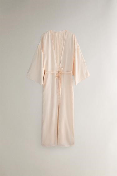 Хлопковый халат Zara Home с длинными рукавами, глубокими складками и поясом