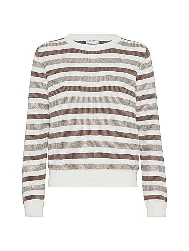 Хлопковый свитер с блестящей полосой от Brunello Cucinelli, с объемными рукавами и декором из монеллы