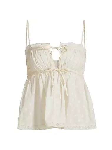 Хлопковый топ Quinn с узором в горошек и кружевной отделкой от Ulla Johnson