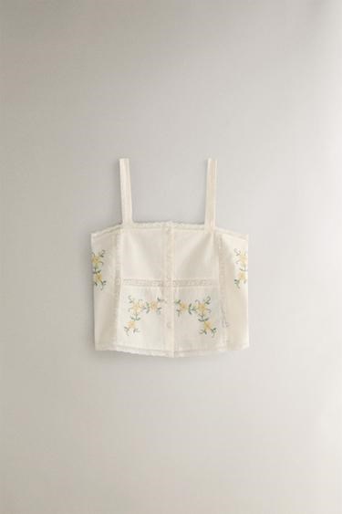 Хлопковый топ с вышивкой на тонких бретелях от Zara Home, в молодёжном стиле