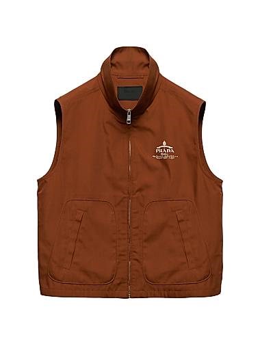 Хлопковый жилет Prada с прочным воротником и застежкой на молнии, стандартная посадка и вместительные карманы