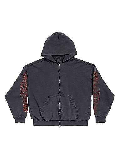 Худи Balenciaga на молнии средней свободности, без шнурка, с двойной молнией, 100% хлопок