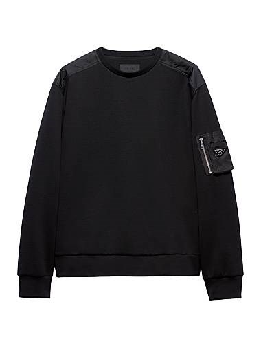 Худи из хлопкового флиса Prada с Oversized-силуэтом, длинными рукавами и карманом из Re-Nylon