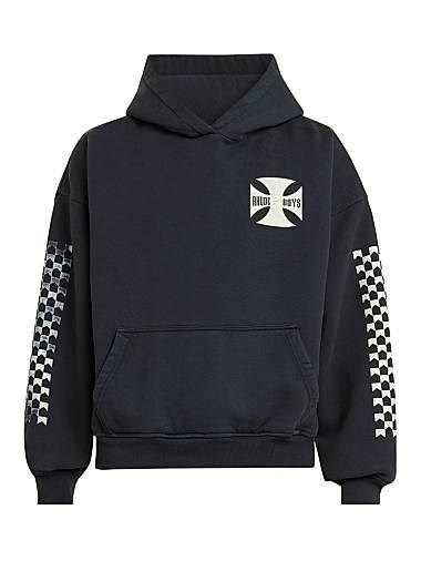 Это худи с широкими рукавами и капюшоном выполнено из хлопка. На груди изображён графический логотип Rhude Boys, а на рукавах - фирменный шеврон.