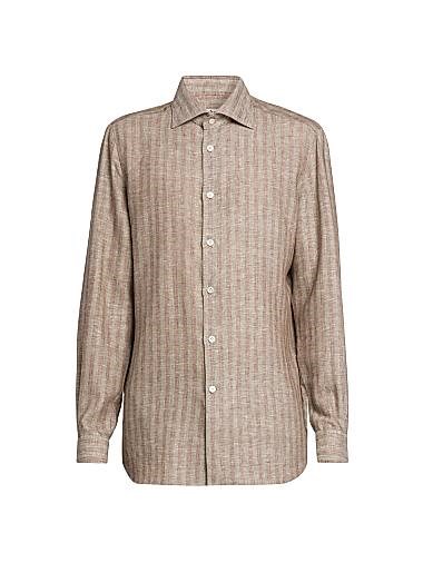 Kiton Льняная рубашка в полоску Bengal с расклешенным воротником и длинными рукавами, производство Италия