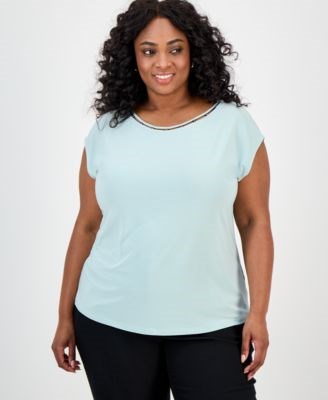 Классическая блуза большого размера с короткими рукавами и бисерной отделкой от Kasper