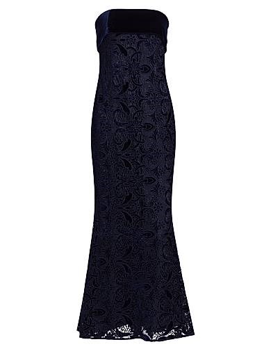 Коктейльное платье Badgley Mischka из бархата с кружевной цветочной аппликацией, без бретелей