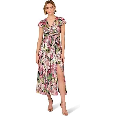 Стильное вечернее платье Floral Metallic Crinkle от Adrianna Papell, которое позволит вам блистать в любой обстановке.