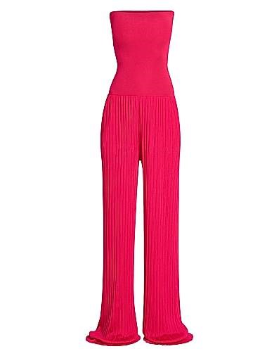 Комбинезон без бретелек от Alaia с расклешёнными плиссированными брюками из вискозы, Италия