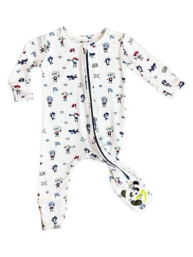 Этот комбинезон от Bellabu Bear оформлен принтом пиратов и застегивается спереди на молнию.