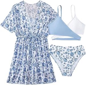 Комплект для девочек от Milumia: купальник из 3 предметов с цветочным принтом, перекрещенные лямки и покрывное платье