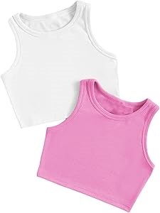 Комплект из 2 базовых молодежных кроп-топов Milumia из рибаны, с круглым вырезом, без рукавов