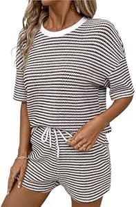 Комплект из двух предметов от Verdusa: полосатая футболка с коротким рукавом и шорты, идеален для отдыха и повседневной носки
