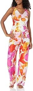 Комплект от Natori: молодёжный кроп-топ на тонких бретелях с летящими брюками, V-образный вырез и регулируемые ремешки