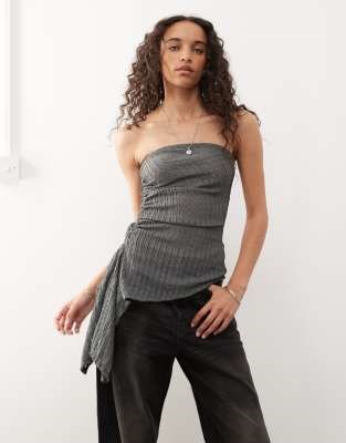 Коричневый асимметричный топ-бандо COLLUSION с облегающим кроем и текстурой рифлёности