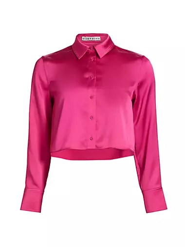 Короткая атласная рубашка Leon от Alice + Olivia с длинными рукавами и пуговицами