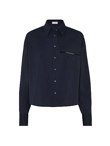 Короткая хлопковая поплиновая рубашка с эластичностью от Brunello Cucinelli, классический воротник, 72% хлопка