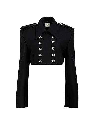 Укороченный фасон с современным квадратным силуэтом, эта куртка выполнена из высококачественного шерстяного смеси: