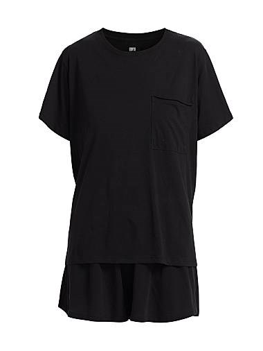 Короткий пижамный комплект из хлопка Пима от Lunya: футболка с карманом и шорты на резинке