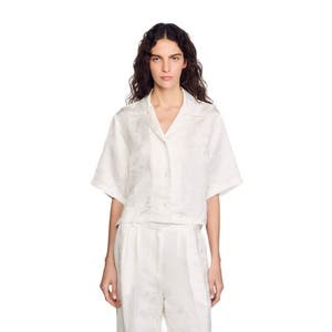 Короткий жаккардовый цветочный лонгслив Sandro с лацканами и поясными петлями