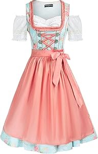 ПОЛНЫЙ НАБОР НА ИЗБРАННЫЕ МЕРОПРИЯТИЯ: Этот аутентичный баварский костюм включает в себя цветное платье формата A-line с скрытой застежкой на молнию, укороченный белый топ с рюшами и эластичным низом, а также фартук с завязкой на талии - всё, что вам нужно для потрясающего образа на Октоберфесте!