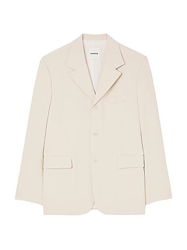 Костюмный пиджак оверсайз из овечьей шерсти с длинными рукавами, застежкой на пуговицы и вентиляцией сзади.
