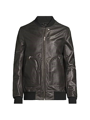 Кожаная куртка-бомбер с длинными рукавами и карманами на молнии Bauhaus Flight от Rick Owens