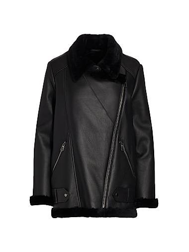 Кожаная мото-куртка из нубука и овечьего меха Maximilian с накладными карманами и асимметричной застёжкой