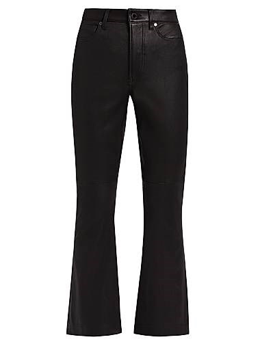 Брюки Carson от Veronica Beard выполнены из кожи и имеют расклешенный крой к низу. Классический стиль с пятью карманами завершает этот вариант с завышенной талией.