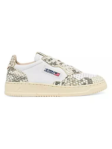 Кроссовки Autry Medalist выполнены из кожи с эффектом змеиного тиснения, что придаёт им впечатляющий внешний вид.