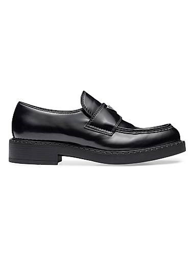 Кожаные натертые лоферы Prada с резиновой подошвой и кожаной стелькой, каблук 35 мм